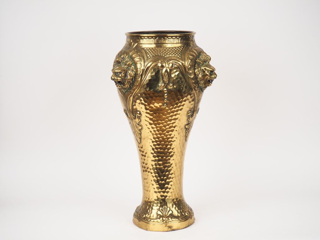 KLAHR. Porte parapluie en laiton repoussé à décor de mufles de lion. Signé H. 60 cm