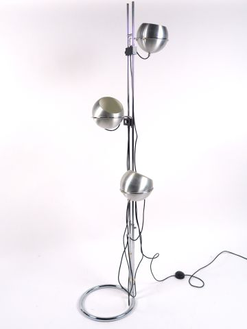 Lot de Lampadaire années 70 en métal chromé, éclairant à trois lumières. au prix de 100 à 150 € en vente aux enchères par l'hôtel des ventes Primardeco