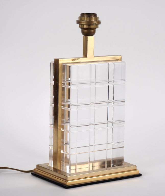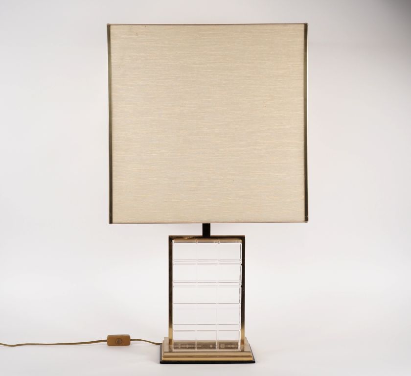 Lot de Lampe années 60 en verre et laiton doré, décor géométrique. H. 40 cm. au prix de 40 à 60 € en vente aux enchères par l'hôtel des ventes Primardeco