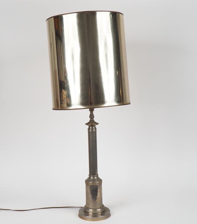 Lot de Lampe de salon en forme de colonne ionique en métal chromé. H. 50,5 cm au prix de 80 à 120 € en vente aux enchères par l'hôtel des ventes Primardeco