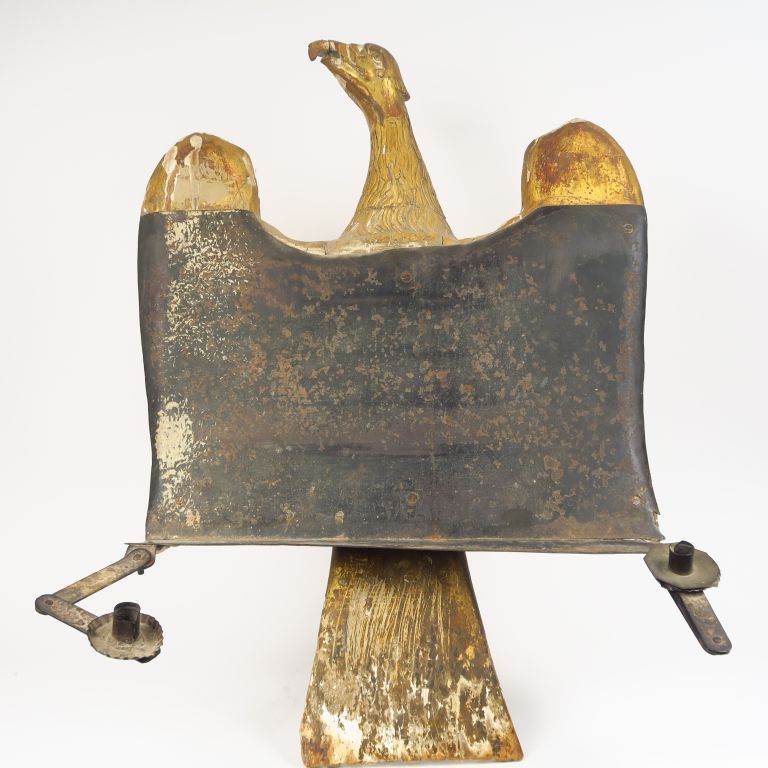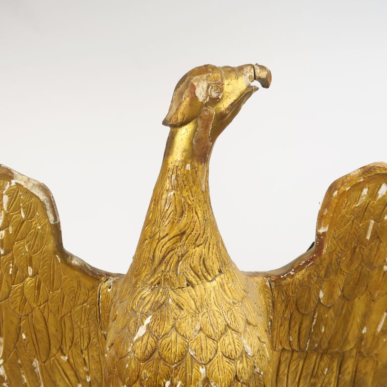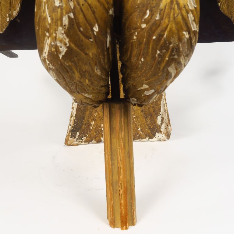 Lutrin fin XVIIIème en bois et stuc doré figurant un aigle aux ailes déployées. H. 83,5 cm (accidents et restaurations)