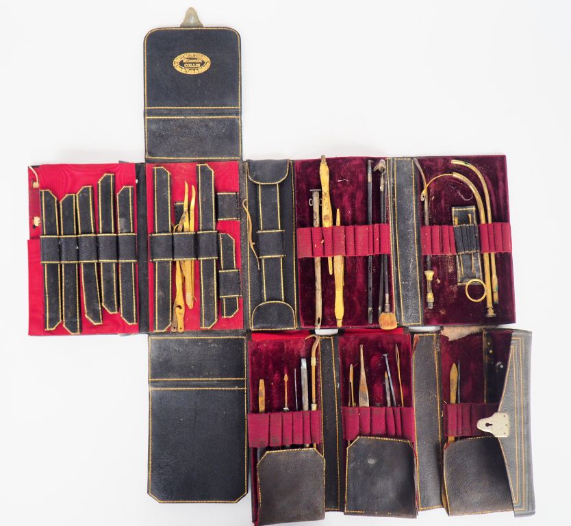 Maison CHARRIERE COLLIN. Nécessaire de chirugie dans deux étuis en cuir, signés.