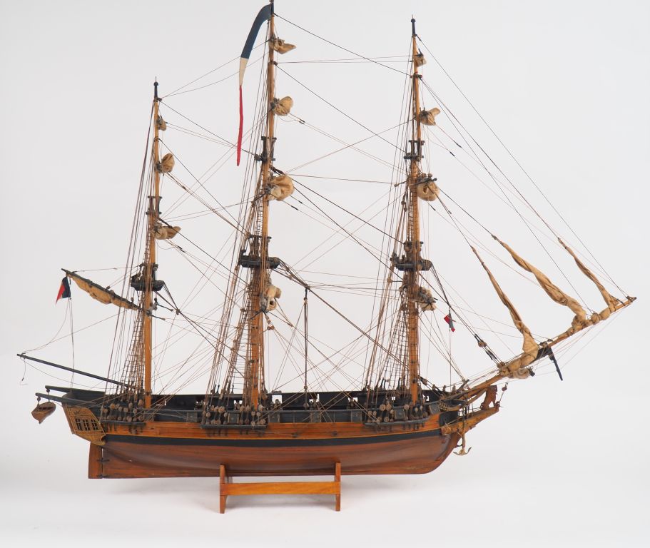 Maquette de trois mâts "L'Astrolabe". Dim. 83 x 117 cm.