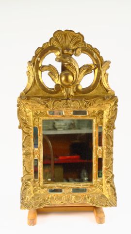 Miroir à parecloses Louis XV en bois sculpté et doré (petits accidents). 66 x 36 cm