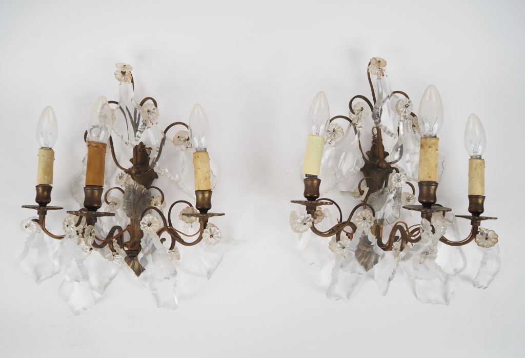 Paire d'appliques à pampilles éclairant à trois lumières.