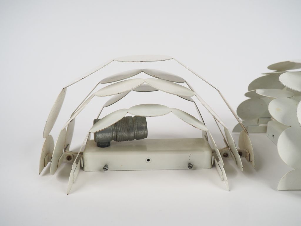 Paire d'appliques murales demi-lune 1970 en métal laqué blanc. Dim. 22,5 x 13 cm.