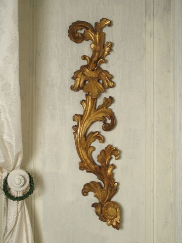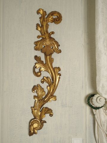 Lot de Paire de bois sculptés et dorés à décor de feuilles d'acanthe . H. 97 au prix de 200 à 300 € en vente aux enchères par l'hôtel des ventes Primardeco