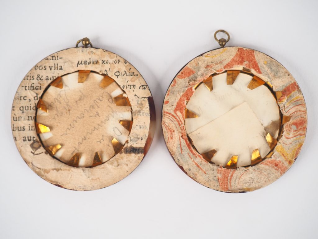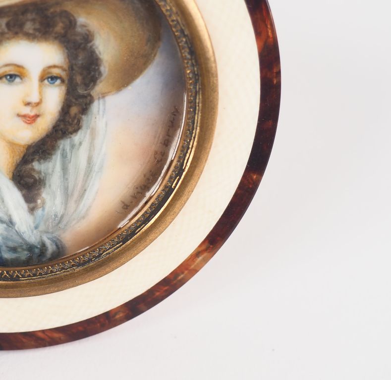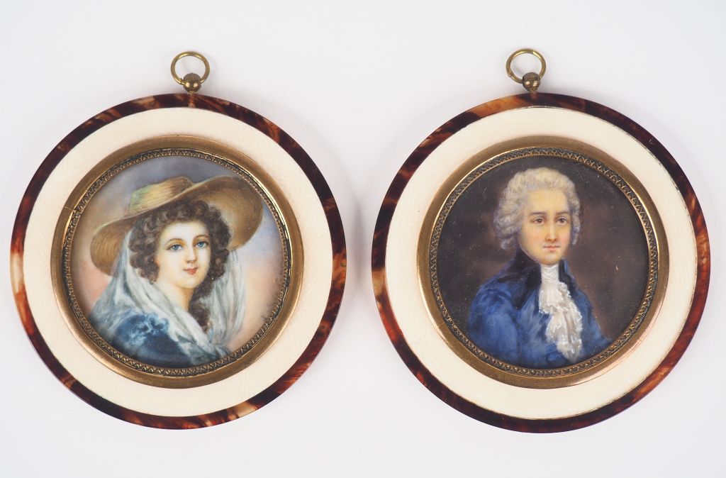 Paire de miniatures de style Louis XVI "Portrait de Monsieur et de Madame". Diam. 4,5 cm