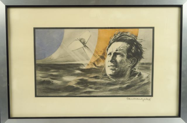 Paul LENGELLE 'Mermoz'. Lithographie en couleur contresignée en bas à droite. 19 x 33 cm