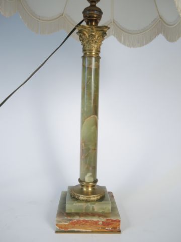 Pied de lampe Napoléon III en forme de colonne corinthienne en onyx et bronze doré (accidents). H. 43,5 cm
