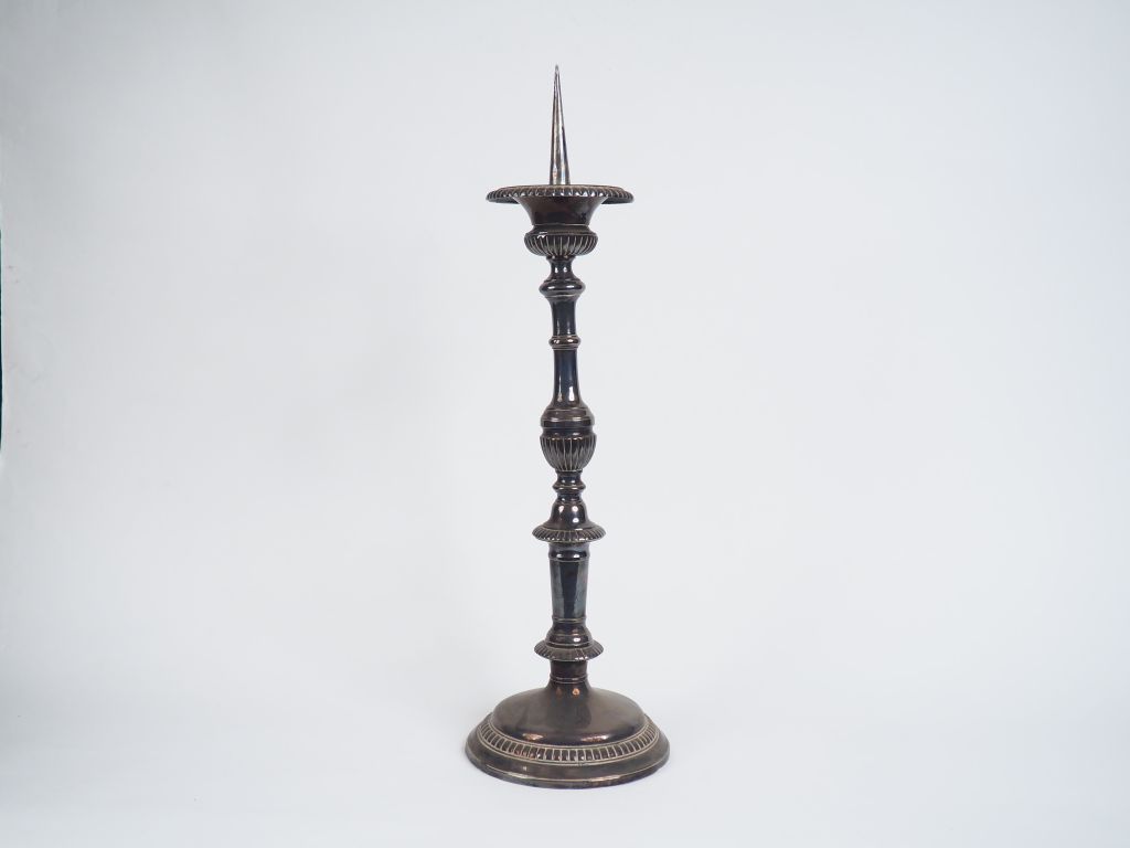 Pique-cierge en bronze argenté de style Louis XIII. H. 61 cm