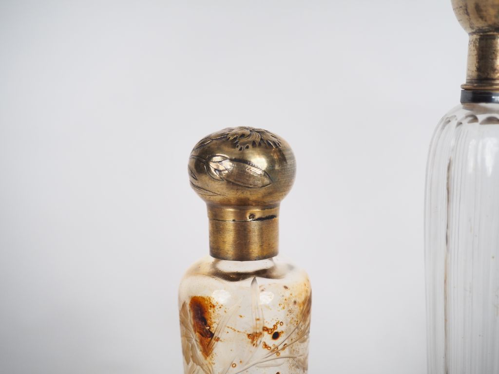 Lot de Quatre différents flacons à odeurs en cristal et argent. au prix de 30 à 40 € en vente aux enchères par l'hôtel des ventes Primardeco