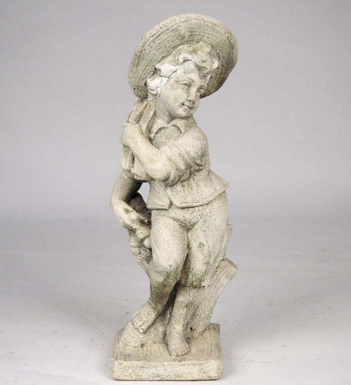 Lot de Sculpture de jardin en ciment "enfant jardinier" H. 70 cm au prix de 80 à 100 € en vente aux enchères par l'hôtel des ventes Primardeco