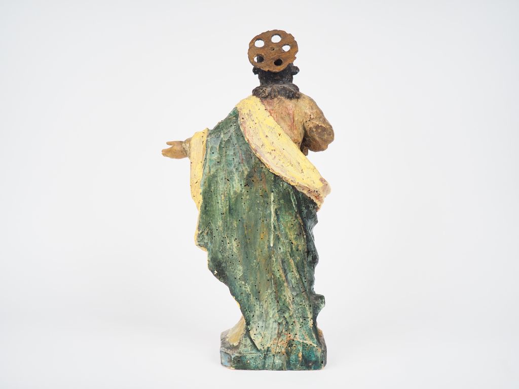 Sculpture XVIIIème en bois polychrome "Saint personnage". H. 43,5 cm. (repeinte).