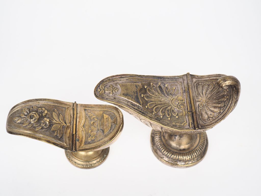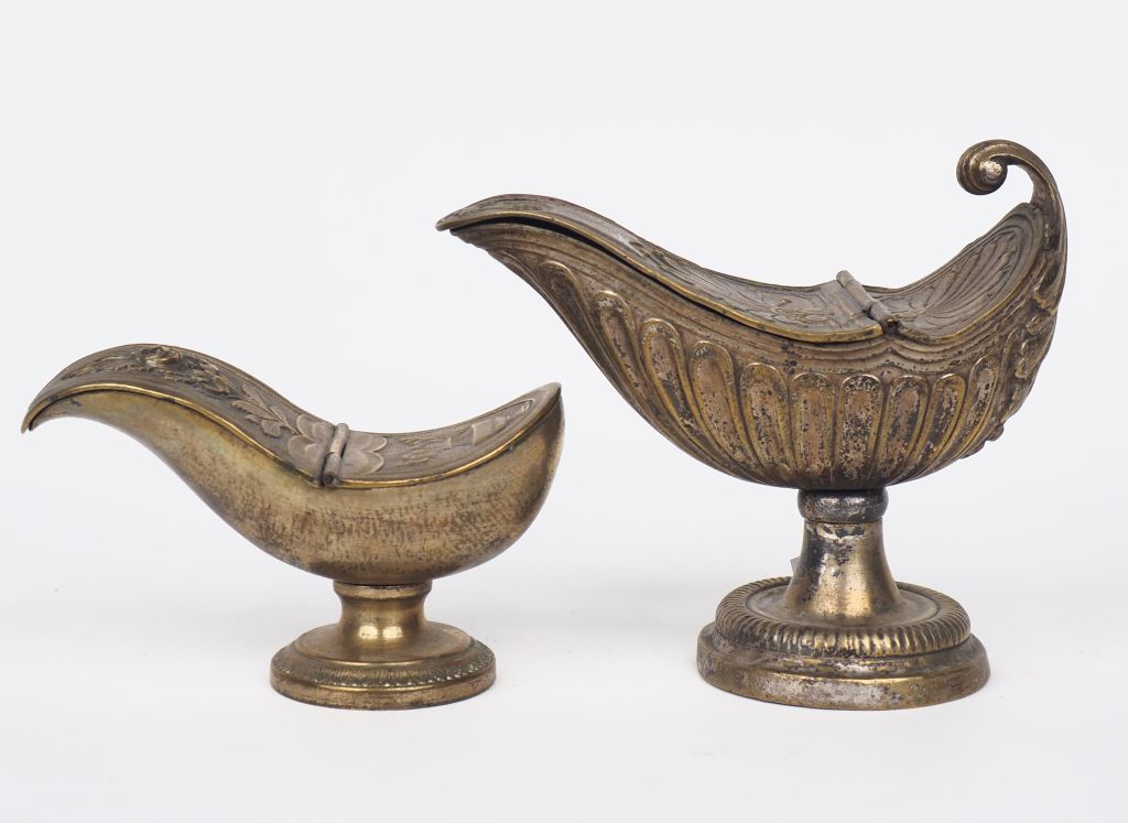 2 différentes navettes à encens XIXème en bronze. Dim. 15 x 17 x 8 cm. Dim. 9 x 14 x 7 cm.