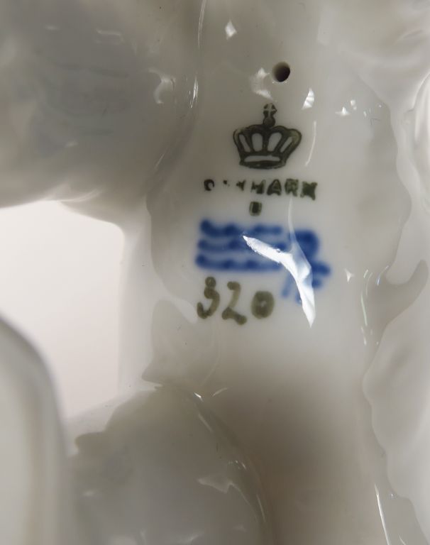 2 sujets en porcelaine polychrome de Copenhague "Ours blanc", "Mouette...