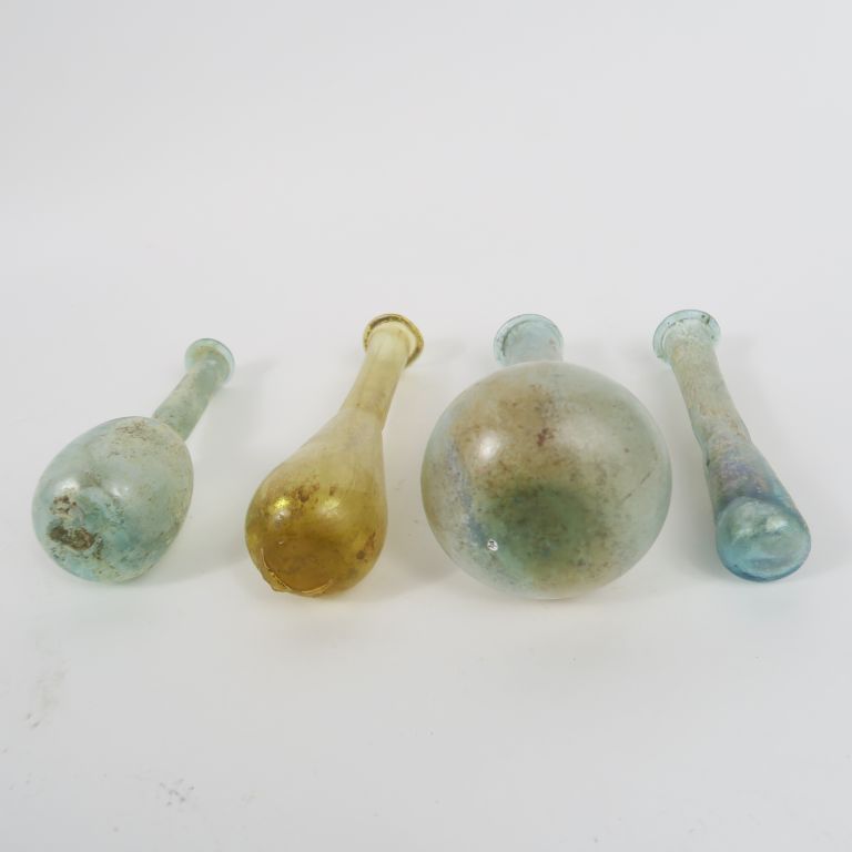 4 balsamaire romains en verre translucide. I-IIIe s. apr. J.-C.12,5 x ...