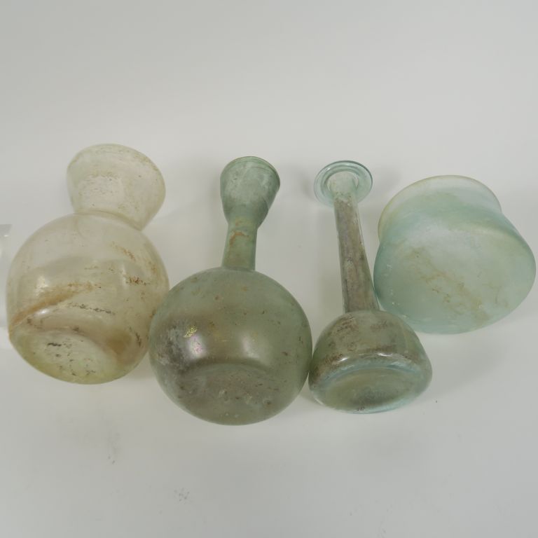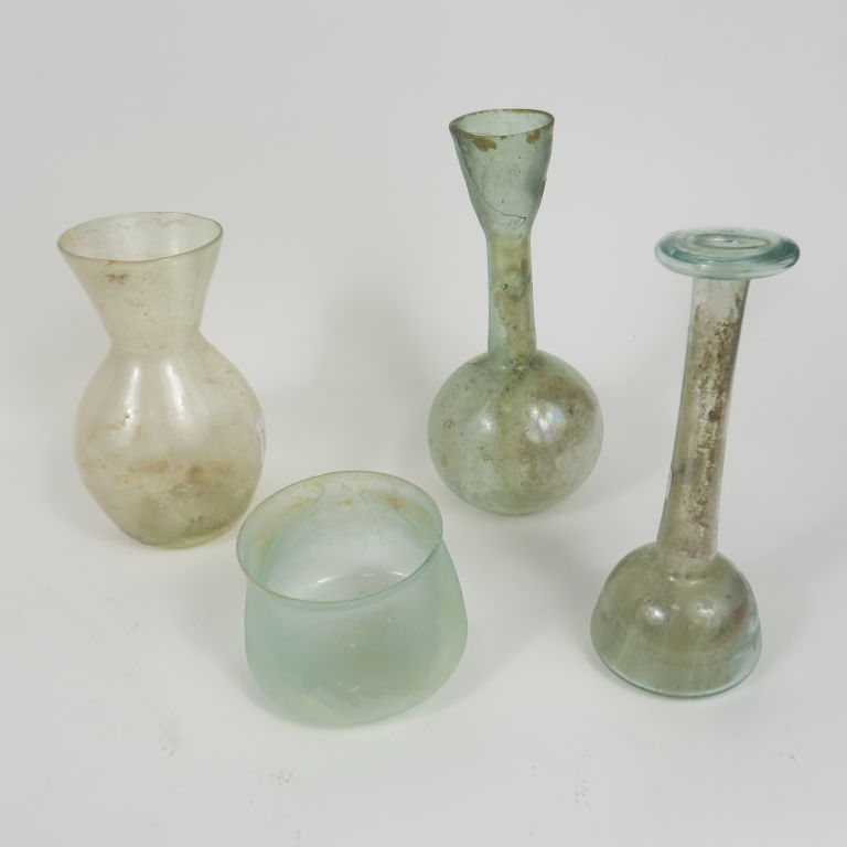 4 verreries romaines. 6 x 9 à 14 x 8 cm