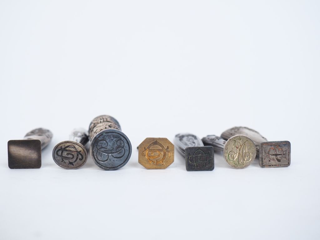 Lot de 7 cachets 1900 en métal argenté, argent fourré ou métal doré. H. de 5, au prix de 40 à 60 € en vente aux enchères par l'hôtel des ventes Primardeco
