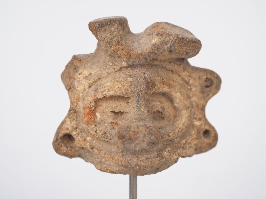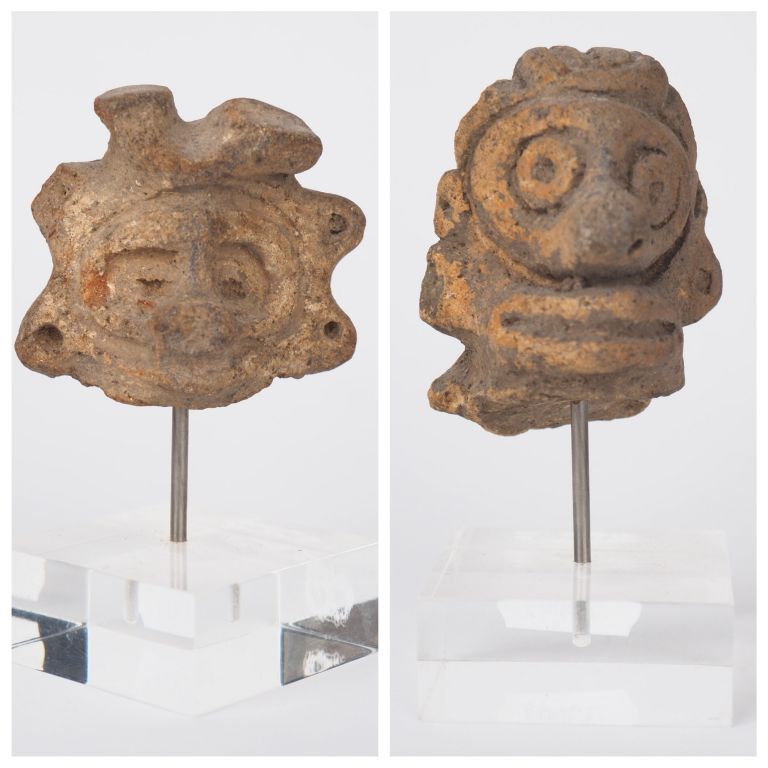 Antilles précolombiennes (V. 1000 apr. J.C). Deux têtes de figurines en céramique. Culture Taïno. H. 5,5 x 7 cm. Expert : Jean-Sylvain Caillou, EI.