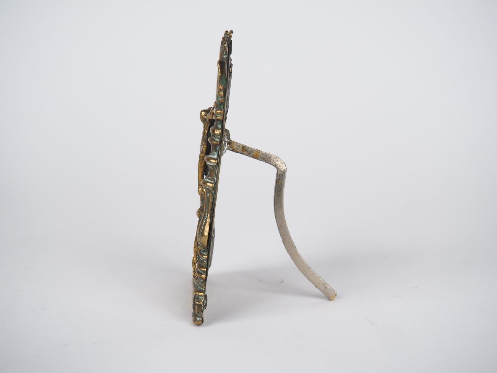 Baiser de paix Louis XIV en bronze représentant les Saintes femmes au pied de la Croix. (prise arrière rapportée et ressoudée) Dim. 10 x 7 cm.
