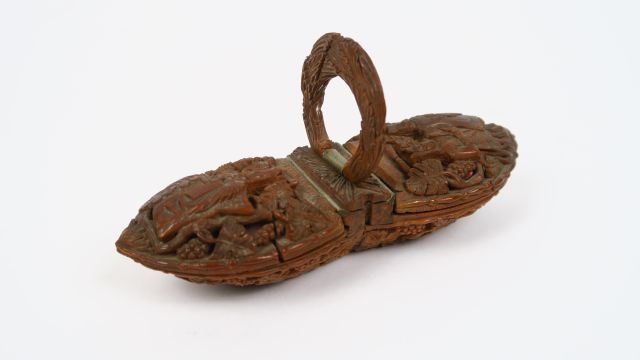 Boite début XIXème en corozo, à décor de personnages et de pampres (petits accidents)