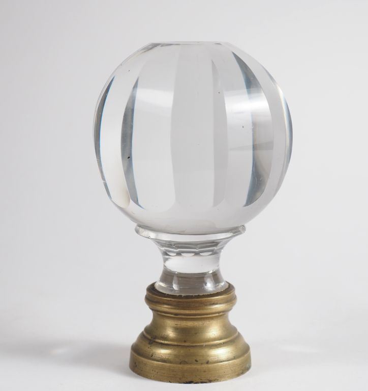 Boule d'escalier en cristal et laiton. (petite égrenure) H. 16 cm