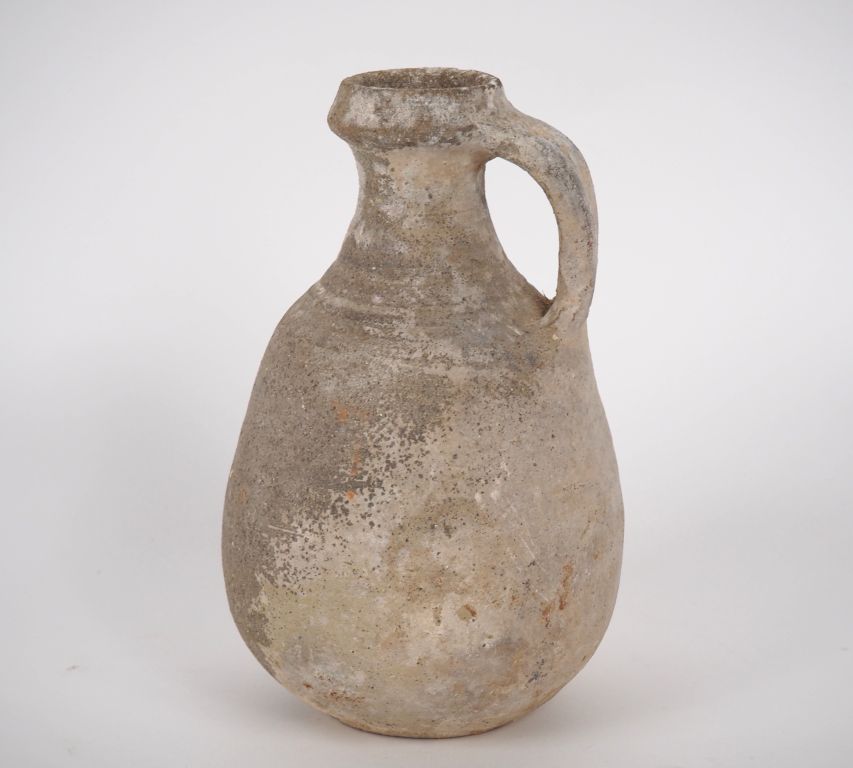 Céramique romaine. Cruche piriforme en céramique beige. 18 cm Expert : Jean-Sylvain Caillou, EI.