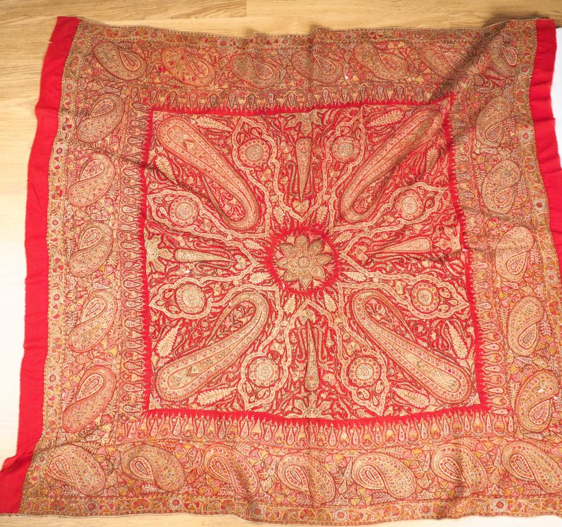 Lot de Châle en cachemire. Dim. 177 x 158 cm (petits accidents) au prix de 200 à 300 € en vente aux enchères par l'hôtel des ventes Primardeco