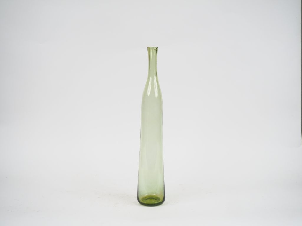 Claude MORIN à Dieulefit. Vase "bouteille folle" en verre soufflé vert. Signée. H. 51 cm