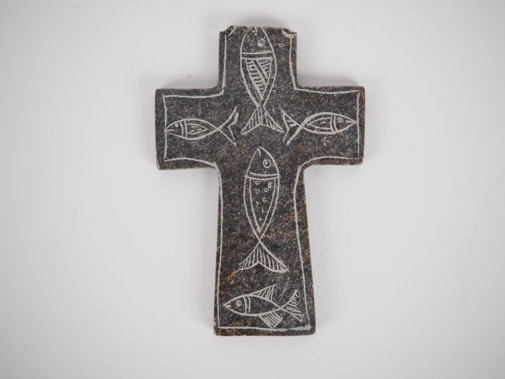 Croix ornée de poisson dans le style antique. 10 cm Expert : Jean-Sylv...