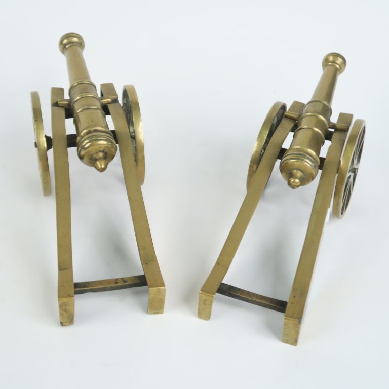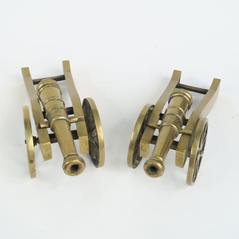 Lot de Deux canons d'artillerie miniatures 1900 en bronze sur leurs supports. au prix de 100 à 150 € en vente aux enchères par l'hôtel des ventes Primardeco