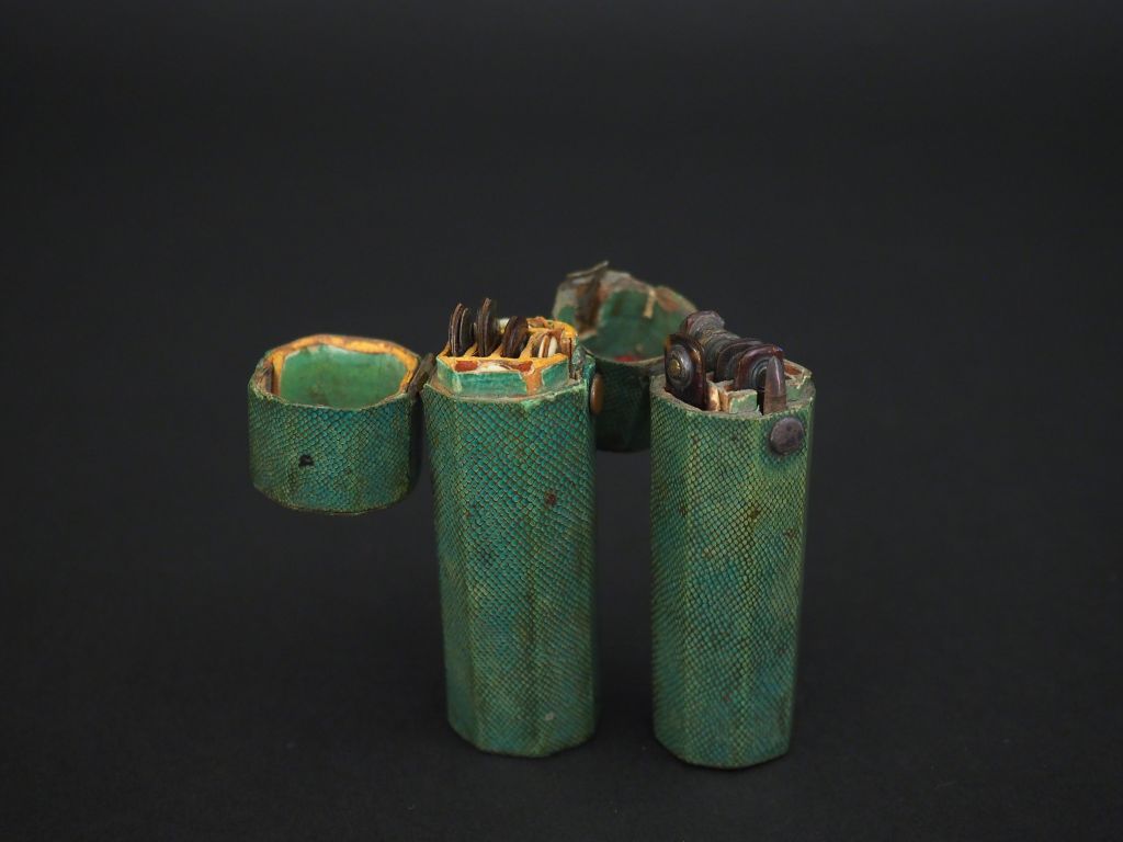 Deux nécessaires à ongles début XIXème en galuchat vert. Dim. 7,5 x 2 ...