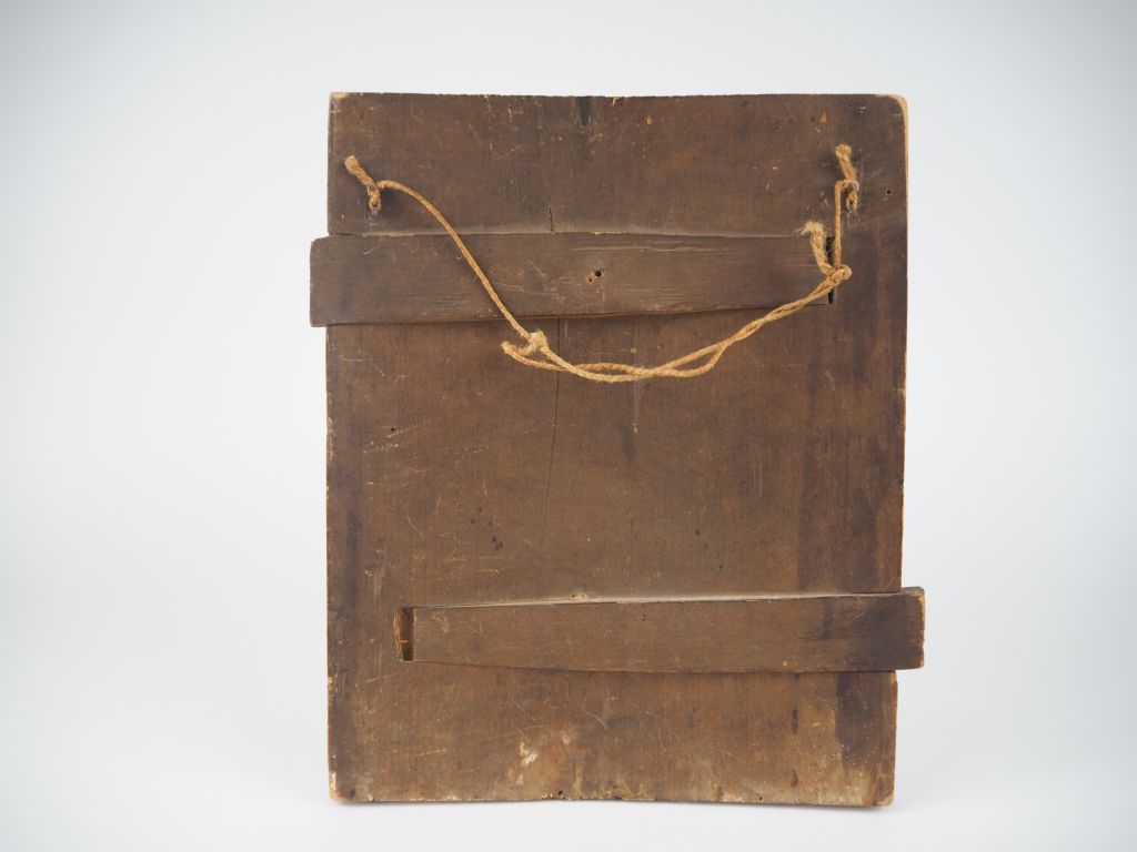 Icône du Christ en Majesté. Russie, fin du XIXe siècle. Autour de Lui, sur la rangée du haut les apôtres Saint Jean, Saint Paul, Saint Pierre et Saint Philippe, à Sa droite, la Vierge Marie et un ange et à Sa gauche, un autre ange et Saint Jean le Précurseur (Jean-Baptiste). Agenouillés à Ses pieds, Saint Zosime et saint Sabbatios de Solovki.. Tempera sur bois. Dim. 33 x 27 cm Expert : Nicolas Filatoff