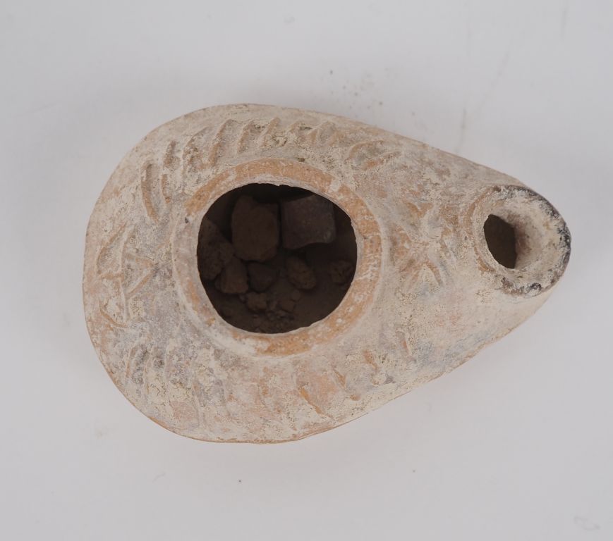 Jérusalem. Lampe romaine ornée d’une croix. IV-Ve s. apr. J.-C. 7 cm Expert : Jean-Sylvain Caillou, EI.