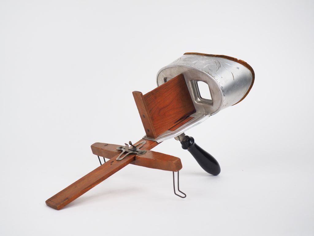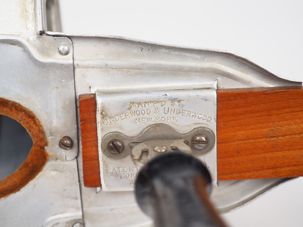 Manufacture Underwood à New York. Visionneuse en bois et métal , Signée, modèle daté 1901. Dim. 32 x 17,5 cm.