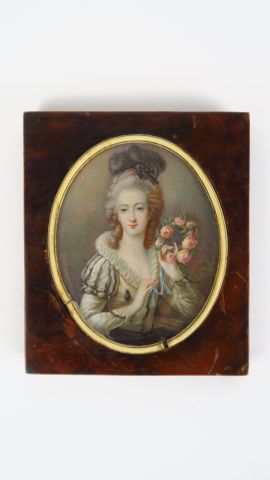 Miniature début XIXème 'Portrait de Marie thérèse Van dietrichsteistein'. 9 x 7,5 cm (petit accident au cadre)