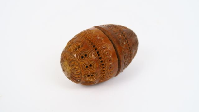 Œuf à chapelet en corozo à décor de motifs géométriques