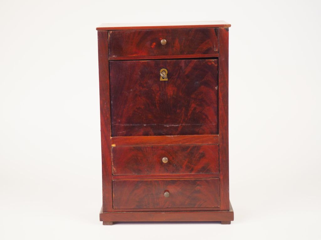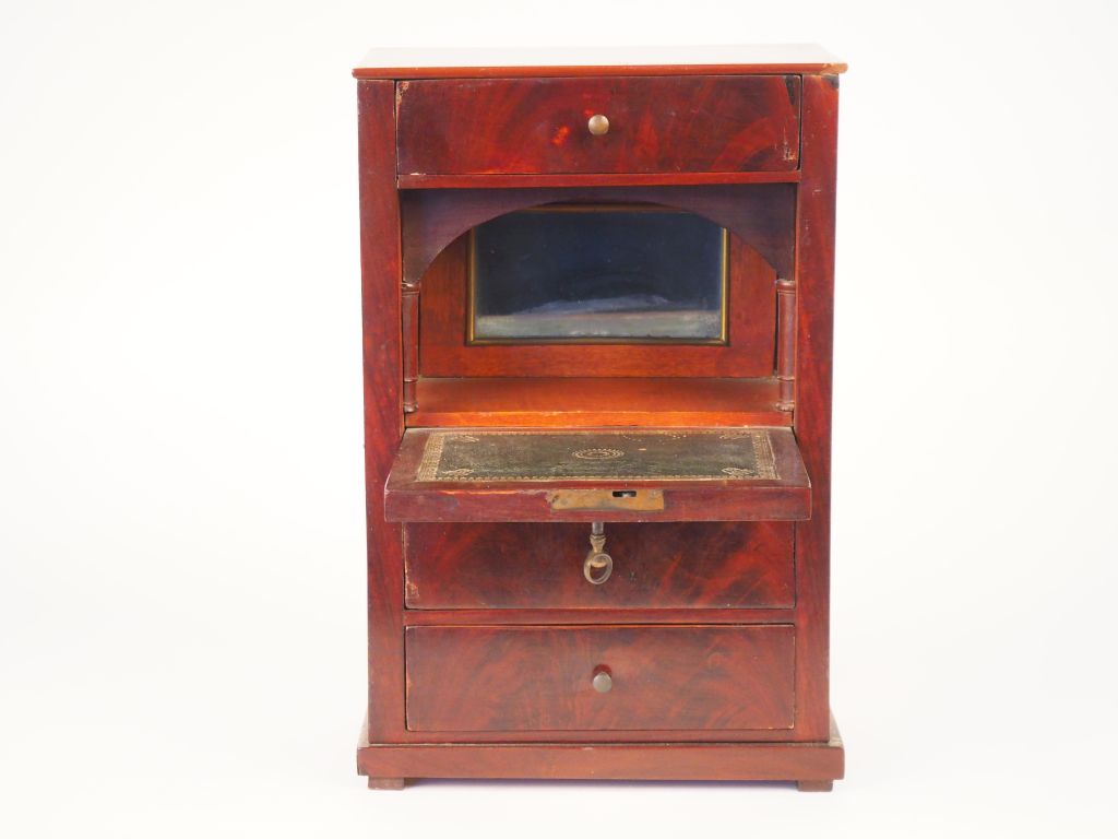 Petit meuble de maîtrise en forme de secrétaire à abattant de style Empire en acajou. (petits accidents). Dim. 37 x 24 x 14 cm