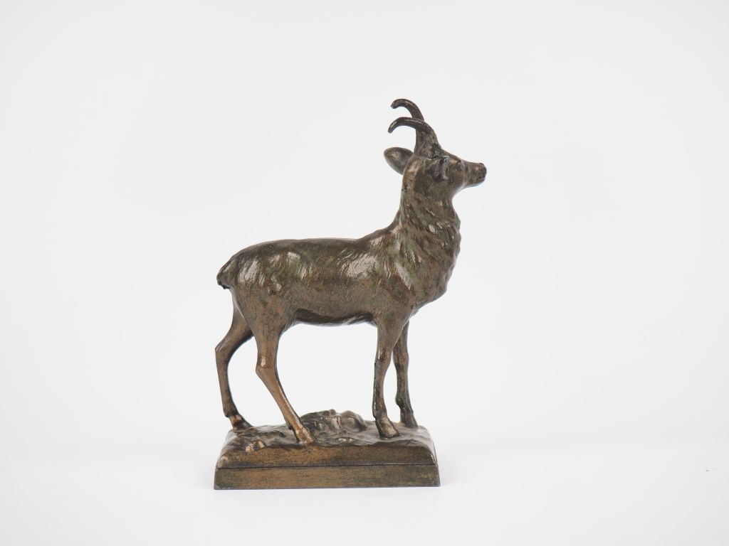 Sujet en régule patiné vert, "Chamoix". Dim. 10,5 x 6,5 x 3,5 cm.