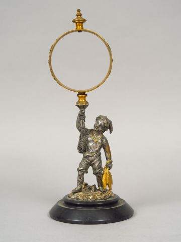 Sujet XIXème en bronze argenté et doré 'le petit pêcheur de poissons' ...