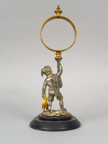 Lot de Sujet XIXème en bronze argenté et doré 'le petit pêcheur de poissons' au prix de 100 à 150 € en vente aux enchères par l'hôtel des ventes Primardeco