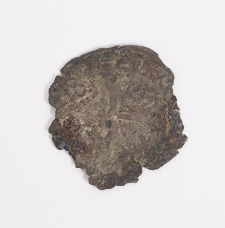 Tête d’Harpocrate en terre cuite avec sa mèche de cheveux caractéristique sur le côté, dans le style des figurines égyptiennes gréco-romaines. H. 6 cm. Accidents, collages et manques. On joint une monnaie du XVIème s. en billon (d. 2,5 cm) avec une ancienne étiquette de provenance. Expert : Jean-Sylvain Caillou, EI.