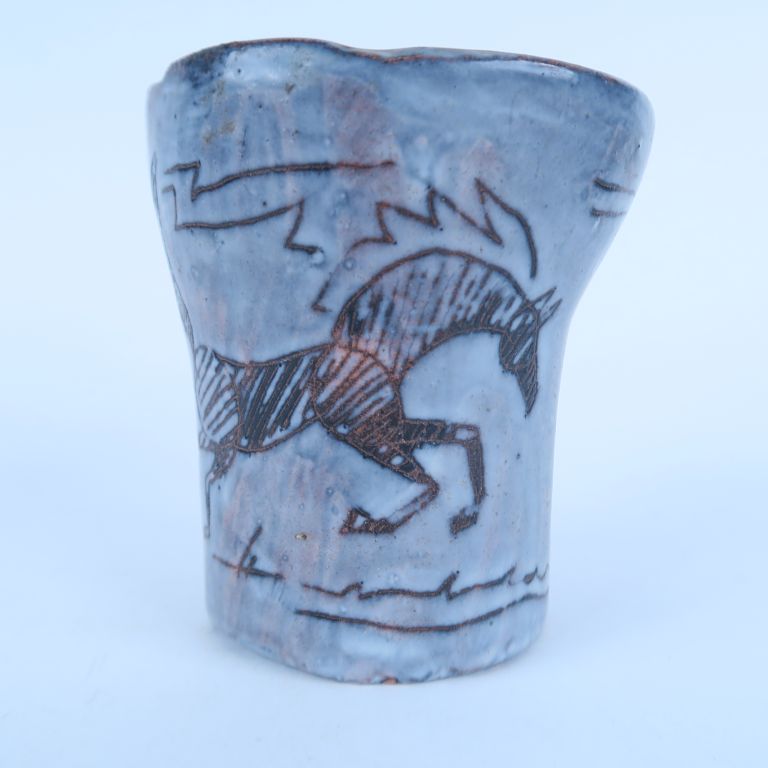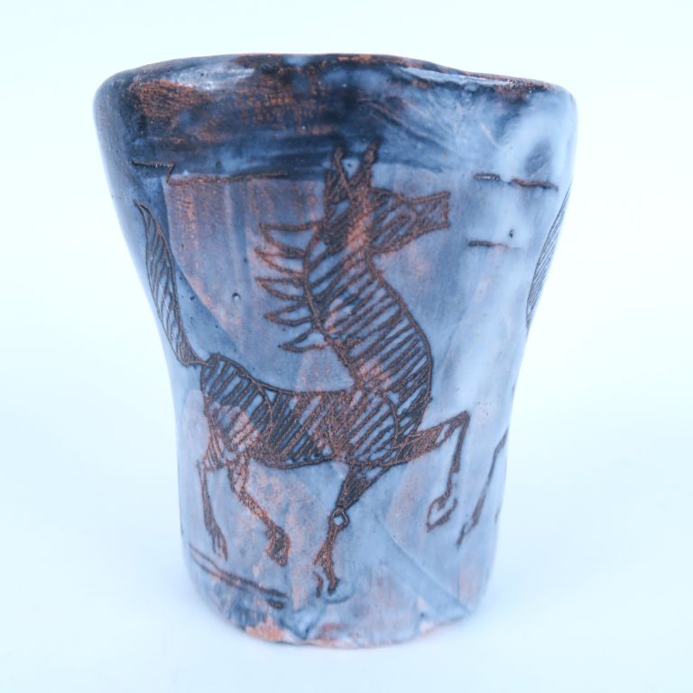 Vase en céramique moderne à décor d'étalons. Signé et daté. H. 11 cm.