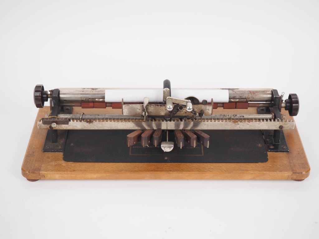 AMERICAN FOUNDATION FOR OVERSEAS BLIND Inc, Calculatrice américaine en braille "Jauny braille writer". Signée dans un cartouche. Dim. 10 x 46 x 20 cm.