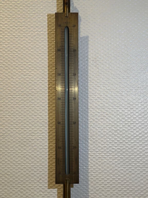 EON à Paris. Thermomètre à vapeur. Signé. L. 96 cm On y joint un baromètre thermomètre anglais de marine. H. 95 cm