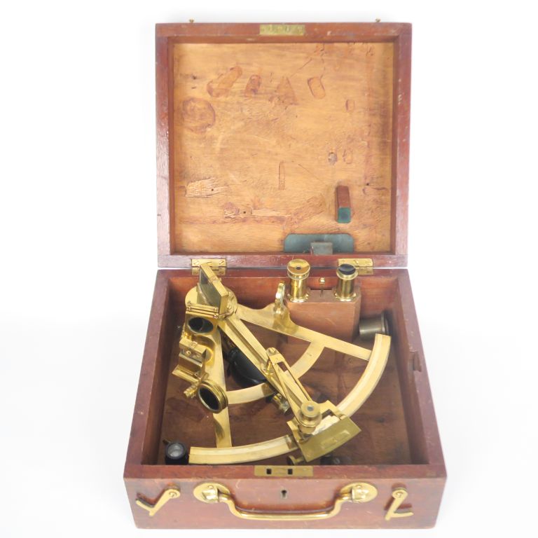 Sextant signé H. Hugues à London dans sa boite avec ses accesoires.