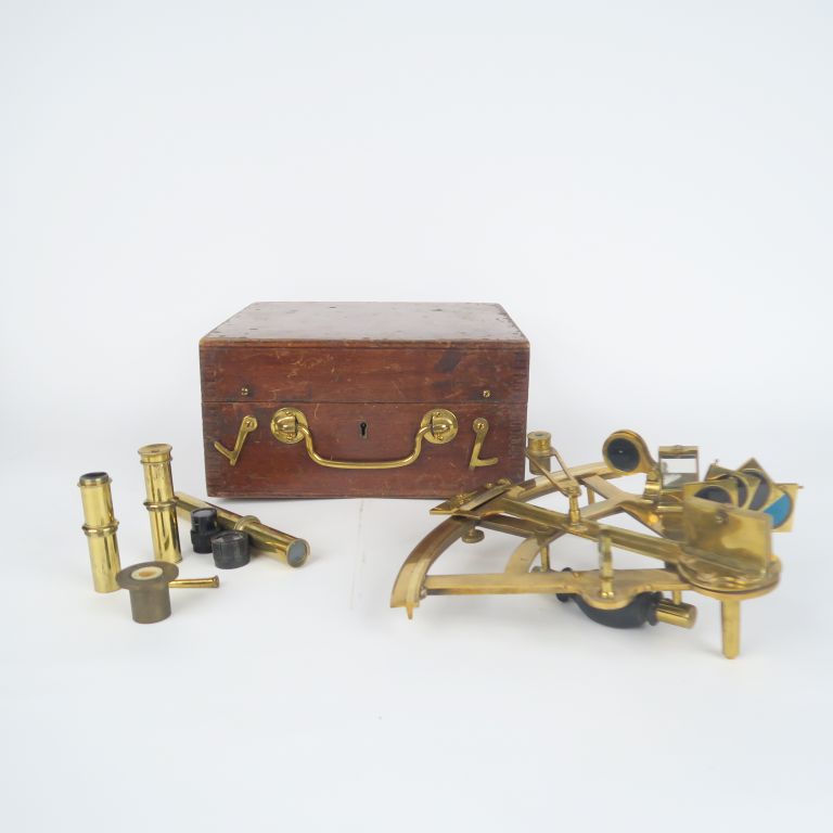 Lot de Sextant signé H. Hugues à London dans sa boite avec ses accesoires. au prix de 150 à 200 € en vente aux enchères par l'hôtel des ventes Primardeco