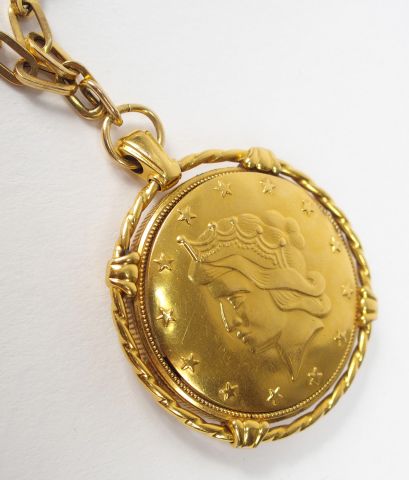 Chaîne or jaune et pendentif cachant une montre en plaqué or. Poids de...