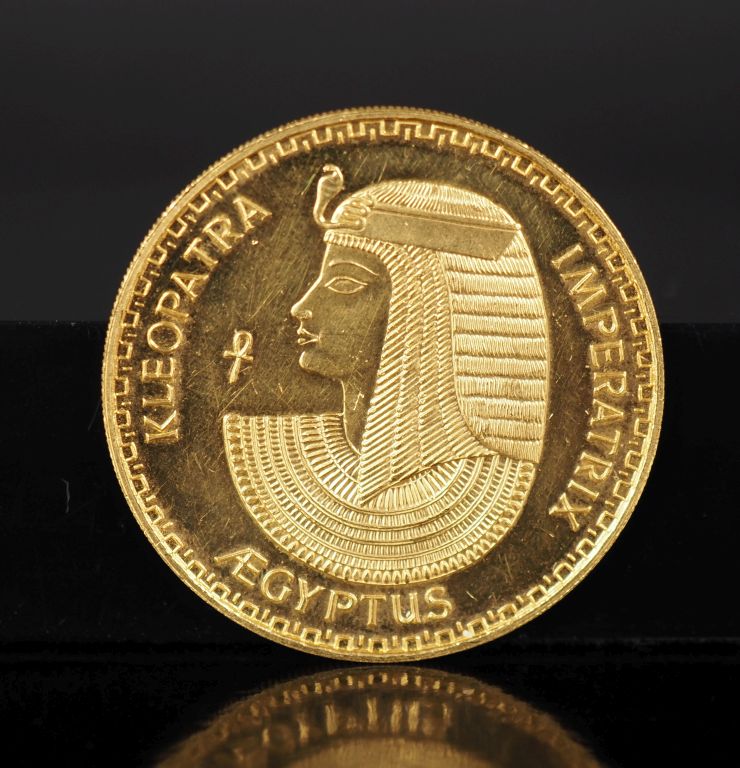 Médaille en or 999 °/00 figurant Hatchepsout sur une face et Cléopatre sur l'autre. Diam. 33 mm Poids. 17,01 g